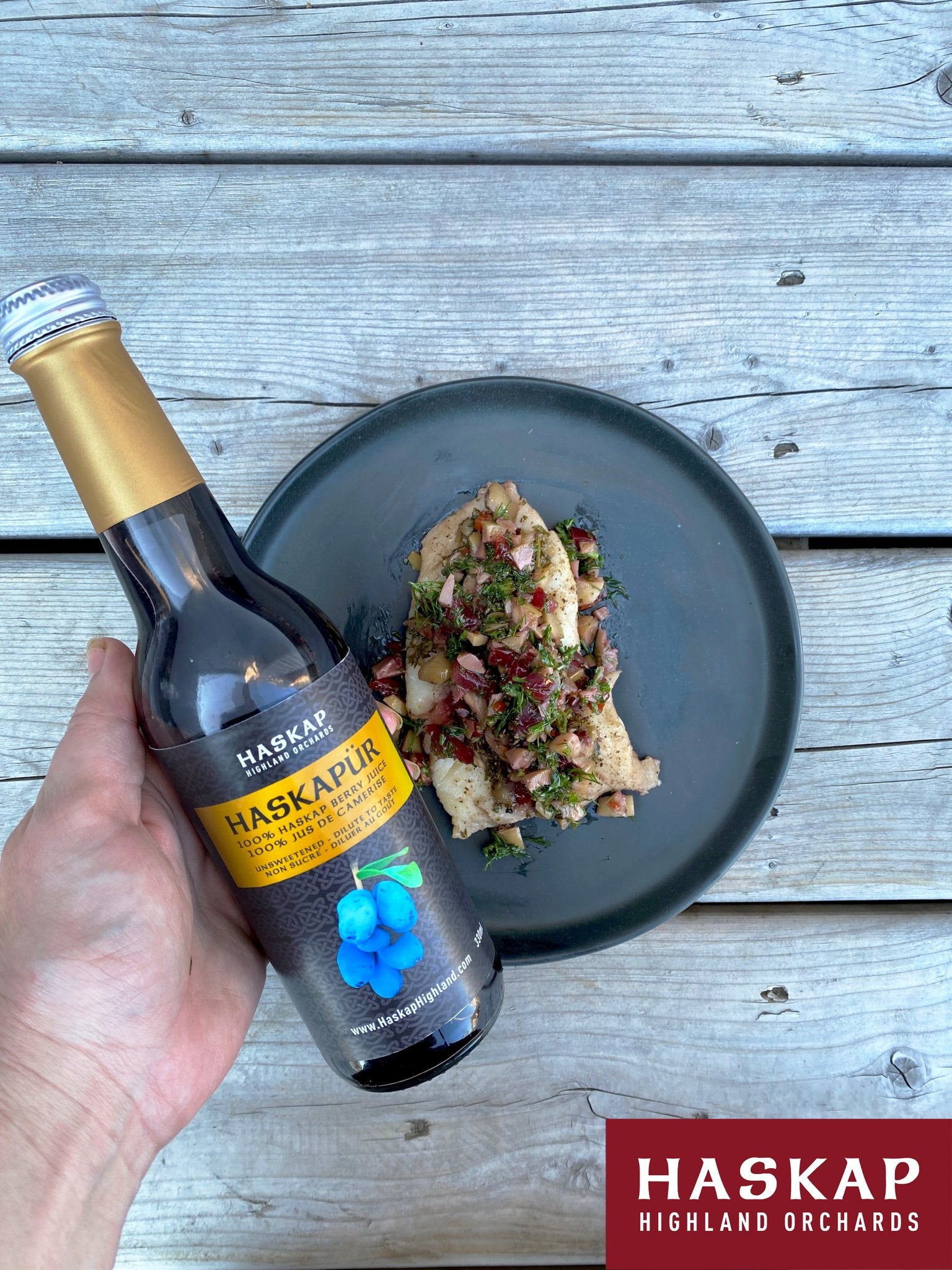 Ingredients: Haskap Berry Juice. No artificial colors, flavors, preservatives or sulphites.